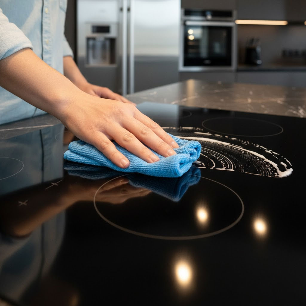 Sau khi nấu, chờ bếp nguội rồi lau bằng khăn mềm và dung dịch chuyên dụng cho mặt kính bếp từ.
