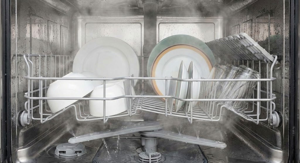 Sấy ngưng tụ (condensation drying) giúp bát đĩa khô tự nhiên trong môi trường kín.