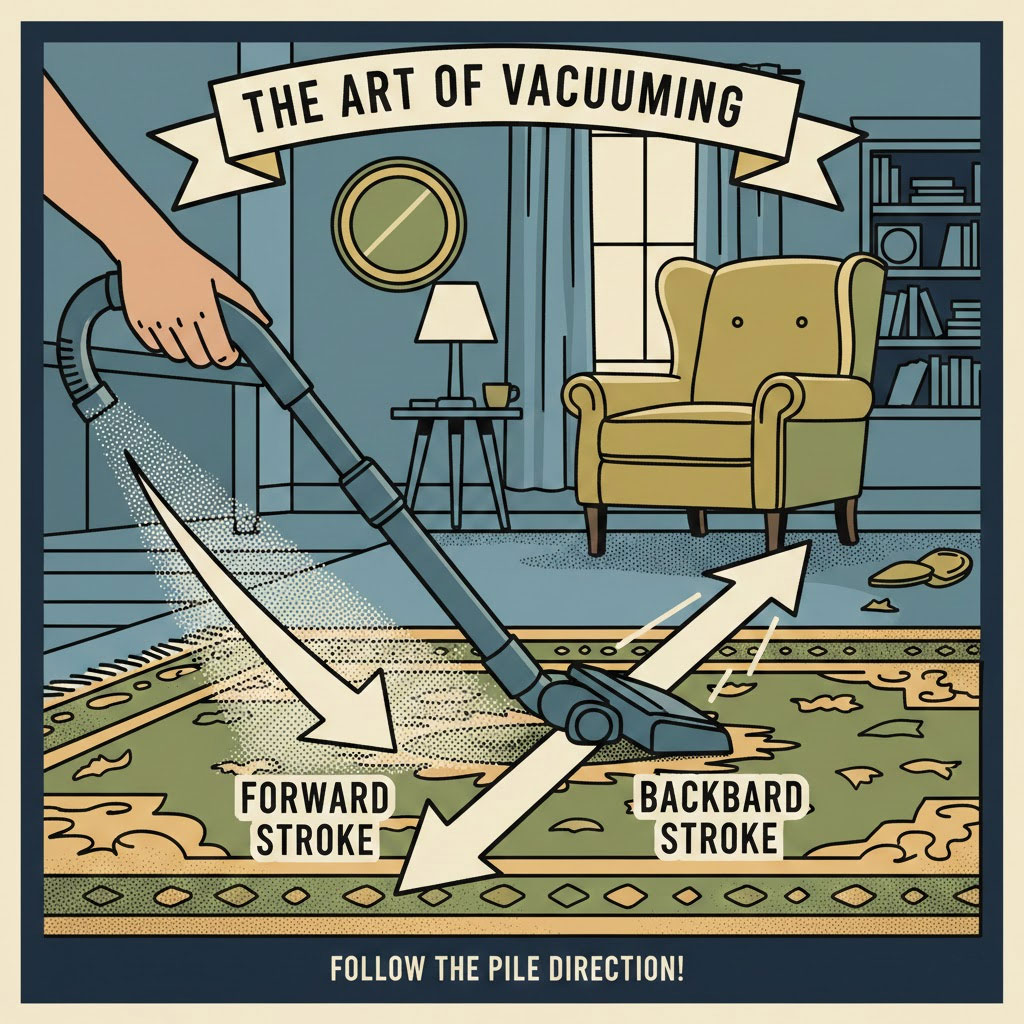 Ưu tiên thảm và nệm 2 lượt: lượt đầu xuôi sợi, lượt sau ngược sợi để kéo bụi sâu.