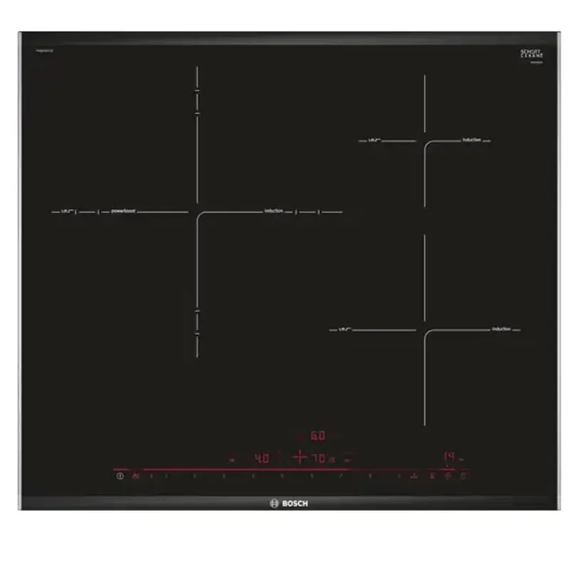 Bếp từ BOSCH PID675DC1E có 3 vùng nấu được sản xuất trên dây chuyền công nghệ hiện đại của Tây Ban Nha và được nhập khẩu nguyên chiếc chính hãng châu Âu.