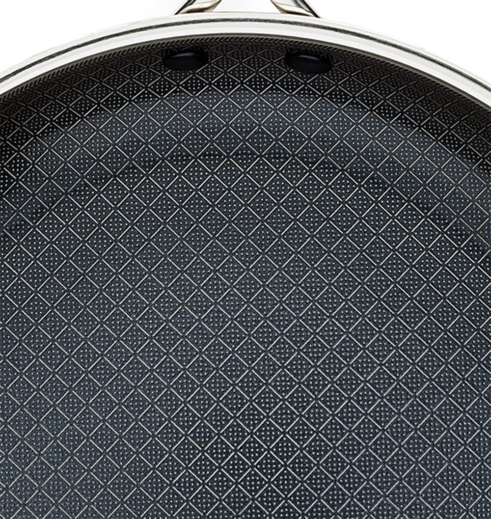 Thiết kế bề mặt kim cương khắc nổi giúp áp chảo hiệu quả, thực phẩm chín đẹp và dễ lấy ra.