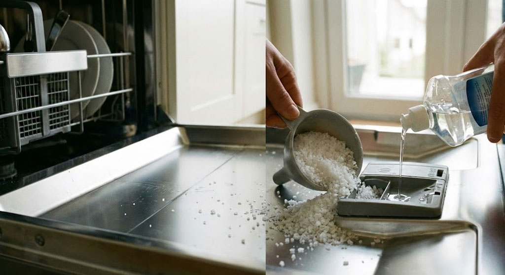 Nhiều người mới dùng máy rửa bát thường bỏ qua trợ xả và muối, vì nghĩ viên rửa all-in-one đã đủ. Thực tế, điều này giống như dùng xe sang nhưng quên thay dầu và nước làm mát.