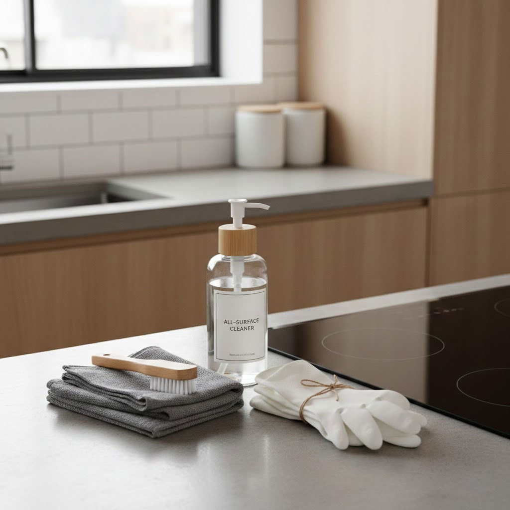 Đúng chất tẩy: Ưu tiên dung dịch trung tính, không axit mạnh, không kiềm cao. Các hệ thống bếp nhập khẩu thường khuyến nghị hóa chất chuyên dụng chính hãng.