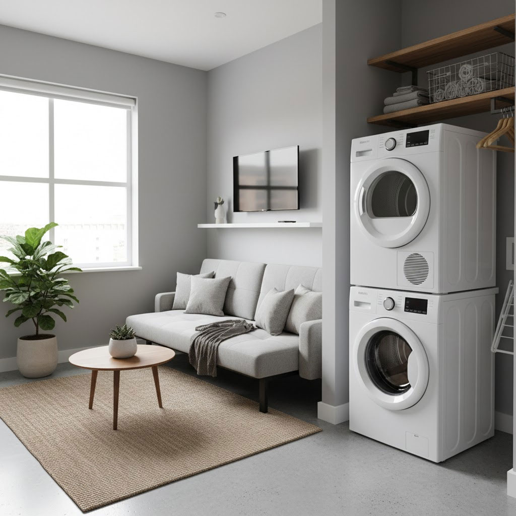 Tiết kiệm không gian: Khi chỉ có một thiết bị đảm nhiệm đồng thời giặt và sấy, khu vực giặt trở nên gọn gàng hơn. Đặc biệt phù hợp với căn hộ mini, chung cư, hoặc những gia đình không có sân phơi rộng.