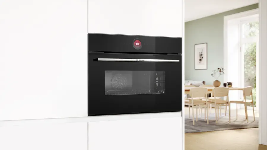 Lò nướng kết hợp vi sóng Bosch CMG7241B1 thiết kế âm tủ giúp tiết kiệm không gian với màu đen sang trọng mang phong cách hiện đại chuẩn Châu Âu