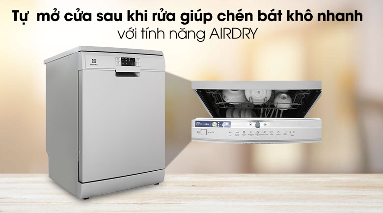 Chúng tôi tin rằng các bạn ai ai cũng thích bát đũa và các vật dụng sau khi đã rửa xong được khô ráo, sạch sẽ. Vì vậy các dòng máy rửa bát không có tính năng sấy thì sẽ được tích hợp tính năng tự mở cửa vào cuối chu trình rửa. Tuy tính năng này rất đơn giản nhưng nó lại giúp bát đĩa được khô ráo tự nhiên.