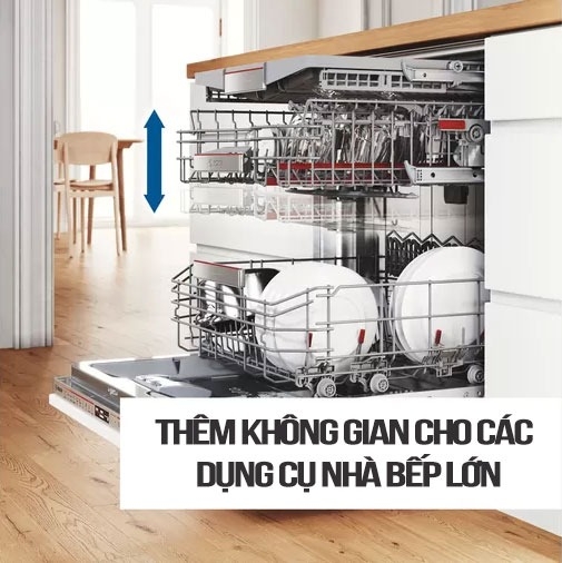 - Khay chứa VarioDrawer: Tối ưu không gian chứa đồ, giúp người dùng rửa được số lượng chén bát và nhiều vật dụng khác hơn.