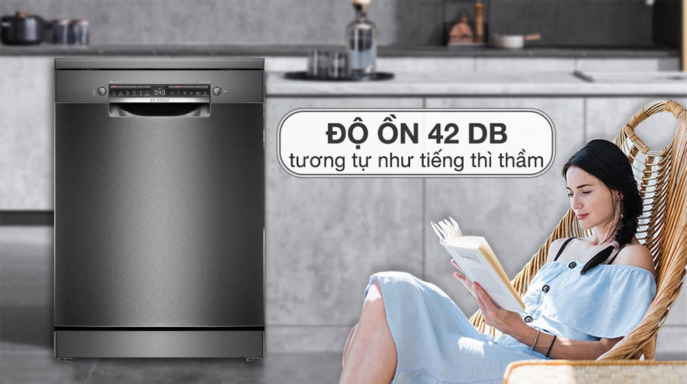 - Độ ồn chỉ ở mức 42 dB như âm thanh khi bạn trò chuyện thì thầm, giữ cho không gian bếp đủ yên tĩnh để bạn không cảm thấy khó chịu mỗi khi nghỉ ngơi, làm việc trong nhà.