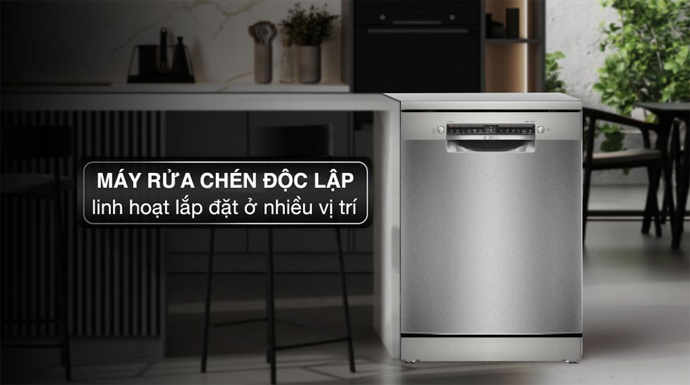 - Máy rửa chén độc lập Bosch này có công suất hoạt động 0,836 kWh/chu kỳ rửa, tiêu thụ khoảng 9 lít cho mỗi lần rửa.
