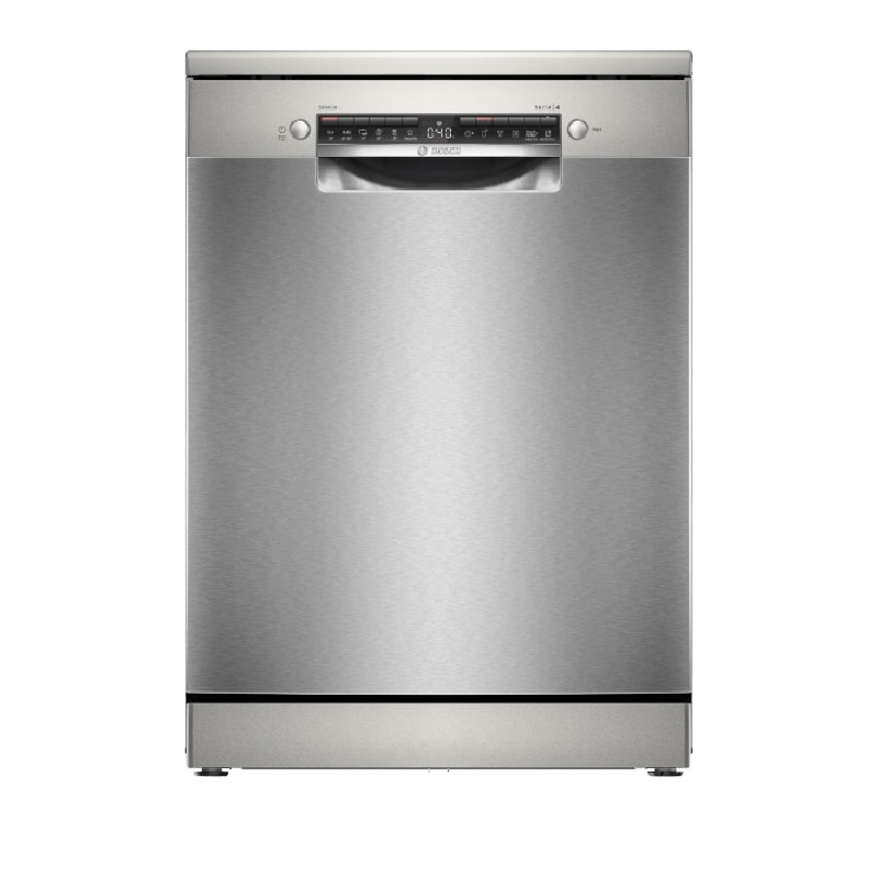 - Máy rửa chén độc lập Bosch SMS4HTI03E có kiểu thiết kế hình hộp chữ nhật đứng với gam màu bạc tinh tế, giúp bạn dễ dàng phối hợp với các nội thất khác bên trong khu vực nhà bếp của gia đình.