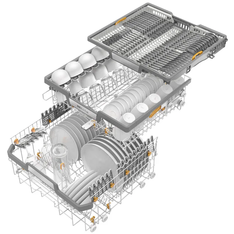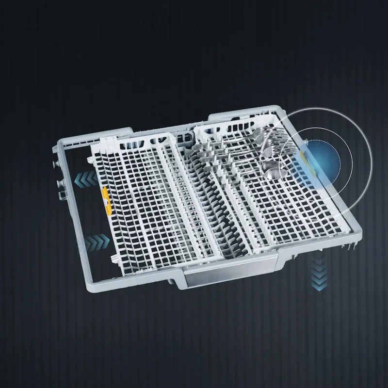 Bạn có thể đặt các bộ đồ ăn nhỏ như tách cà phê vào ngăn kéo dao kéo của máy rửa bát. Ngăn kéo 3D MultiFlex bao gồm phần giữa được hạ thấp và hai phần bên. Chiếc bên trái có thể được đẩy sang bên phải để nhường chỗ cho những ly rượu cao ở giỏ phía trên. Bạn có thể thoải mái đặt dao kéo lớn và các đồ sành sứ nhỏ ở phần bên phải có thể hạ thấp. Gỏ trên có thể điều chỉnh được độ cao.