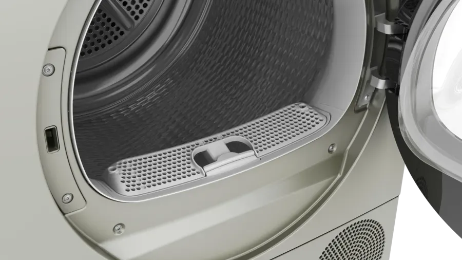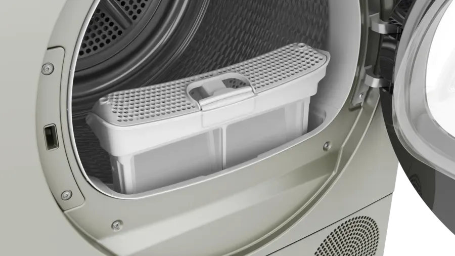 Máy sấy bơm nhiệt Bosch với bình ngưng sẽ tự làm sạch bảo vệ quần áo của bạn và cực kỳ tiết kiệm năng lượng. Nhờ công nghệ tự làm sạch, bình ngưng được tự động làm sạch tới bốn lần trong quá trình sấy. Điều này đảm bảo hiệu quả năng lượng tối ưu với mỗi chu kỳ, thiết kế này làm khô quần áo của bạn một cách nhẹ nhàng và hoàn hảo.