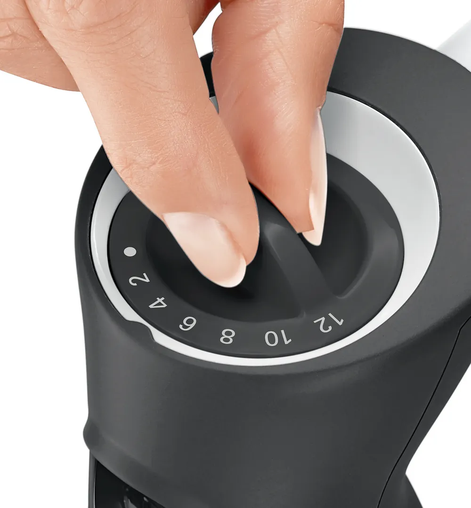 Máy xay Bosch MS6CA4150G sở hữu nút vặn điều chỉnh 12 tốc độ ngay trên tay cầm. Tính năng này giúp bạn kiểm soát mức độ xay nhuyễn một cách linh hoạt – từ xay nhuyễn cháo cho bé, nghiền mịn rau củ, cho đến chế biến sốt, sinh tố hay đá lạnh.
