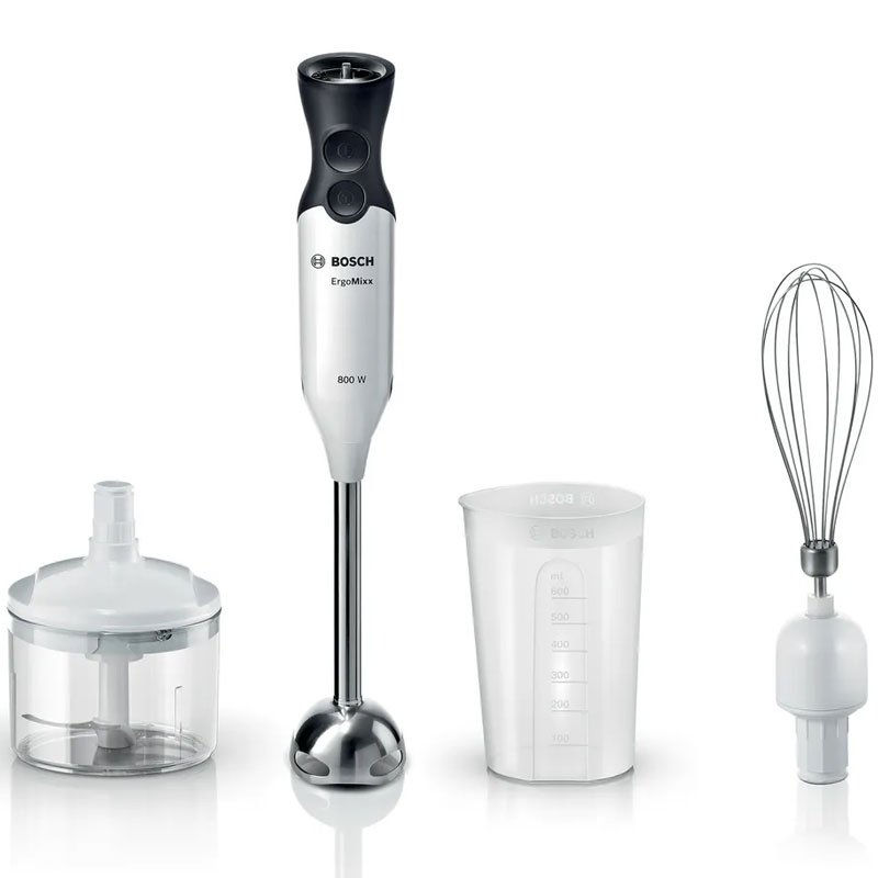 Bosch MS6CA4150G được trang bị động cơ công suất 800W mạnh mẽ, vượt trội hơn hẳn các dòng máy xay cầm tay thông thường. Nhờ đó, máy có thể dễ dàng xử lý các nguyên liệu cứng như hạt, rau củ sống, thậm chí là đá viên, mang đến kết cấu nhuyễn mịn trong thời gian ngắn.
