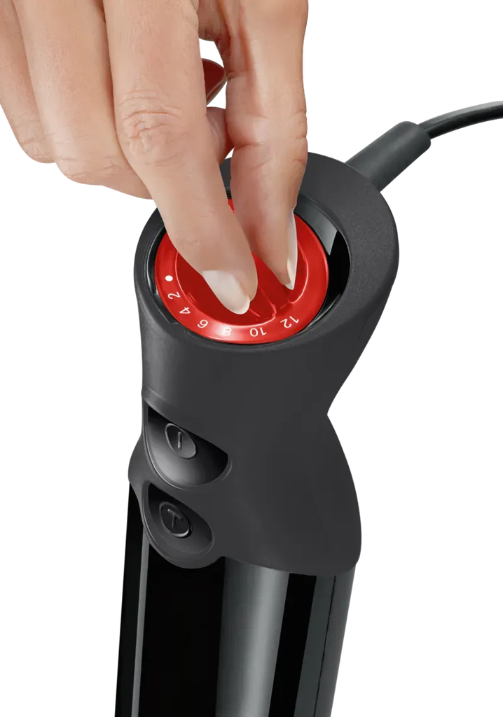 Một trong những điểm nổi bật khác là tính năng điều chỉnh tốc độ 12 mức ngay trên tay cầm, giúp người dùng dễ dàng kiểm soát từng công đoạn. Bạn có thể xay từ nước sốt mềm mịn đến hỗn hợp đặc, hoặc thậm chí là các loại thịt và rau củ cứng mà không cần thay đổi thiết bị.
