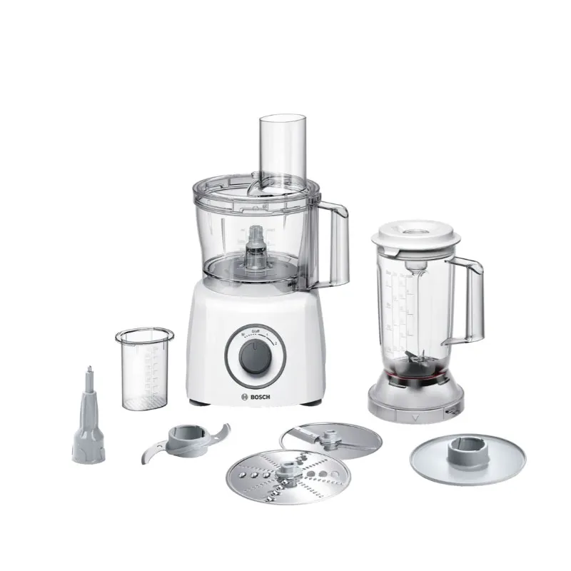 Bosch – thương hiệu đến từ Đức – luôn nổi tiếng với độ bền, hiệu năng ổn định và tính thẩm mỹ cao. Mẫu Bosch MCM3200W tiếp tục khẳng định điều đó khi tích hợp hơn 30 chức năng, từ xay, cắt, trộn, nhào bột, cho tới làm sinh tố và nước ép, tất cả chỉ trong một thiết bị nhỏ gọn.