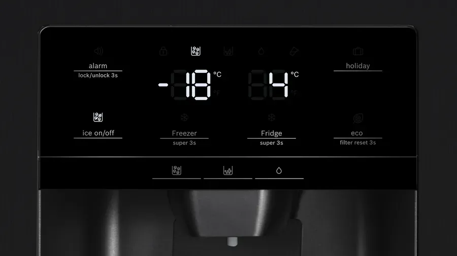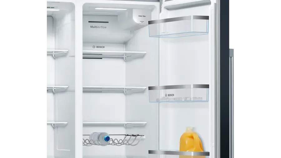 Tủ lạnh Side by side 562 lít Bosch KAD93ABEP có khả năng lấy đá và lấy nước bên ngoài cánh cửa, tiện lợi cho người sử dụng. Hơn nữa, các ngăn và hộc bên trong tủ lạnh được phân chia rõ ràng, giúp cho người dùng phân loại, sắp xếp và bảo quản thực phẩm được tốt hơn.