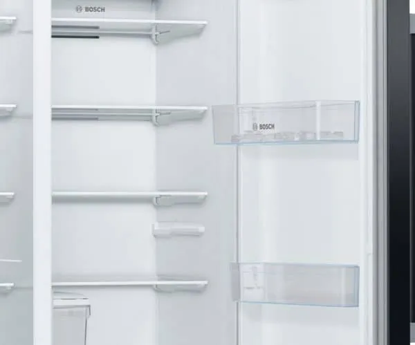 Bosch KAI93VBFP sở hữu thiết kế side by side 2 cánh mở rộng, giúp tối ưu không gian lưu trữ và thao tác sử dụng dễ dàng. Kiểu dáng này đặc biệt phù hợp với các căn bếp lớn, biệt thự hoặc căn hộ cao cấp.