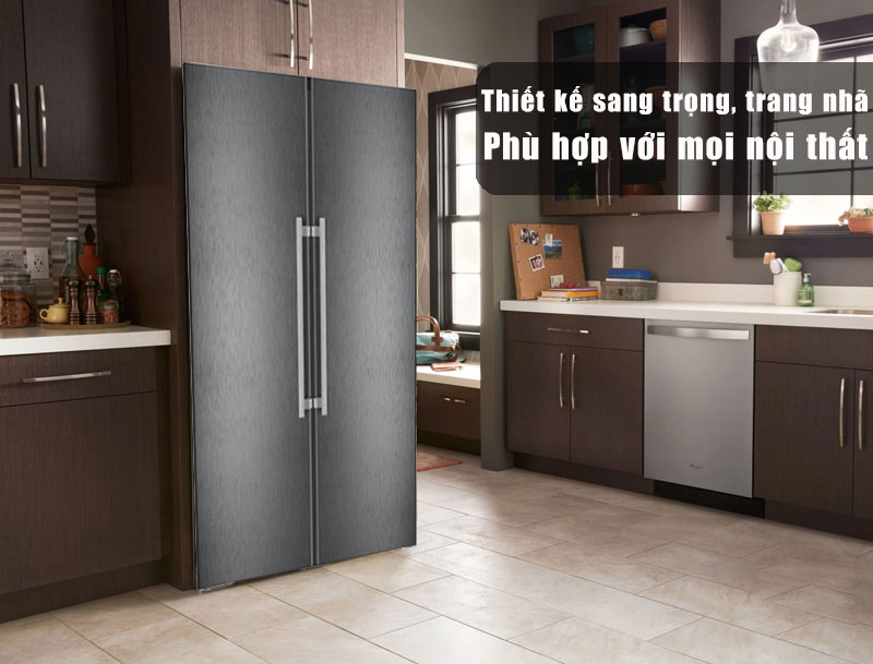 Tủ lạnh LIEBHERR XRFbs 5295 có thiết kế dạng Side by Side, sắc xám đen làm nổi bật vẻ đẹp đơn giản của kim loại thép nguyên chất, mang tới nét thẩm mỹ sang trọng, sắc nét và lớp sơn này có khả năng chống bám vân tay, bạn có thể bố trí sản phẩm này ở mọi không gian bếp trong gia đình bạn.