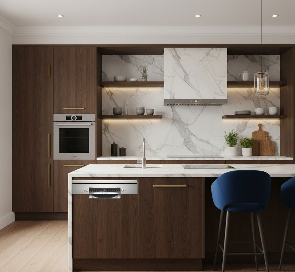 Máy rửa bát Bosch không chỉ là thiết bị gia dụng mà còn là “mảnh ghép” nâng tầm thẩm mỹ không gian bếp. Thiết kế chuẩn châu Âu với gam màu inox, đen hoặc trắng sang trọng giúp máy dễ dàng hòa hợp với phong cách bếp hiện đại, tối giản hoặc cổ điển.