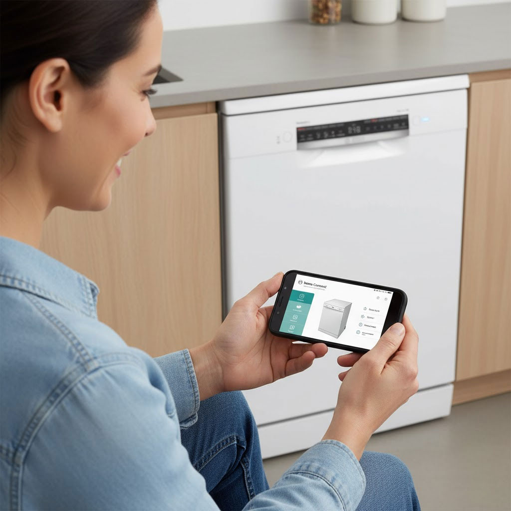 Trong thời đại số hóa, Serie 6 không chỉ là máy rửa bát mà còn là thiết bị thông minh kết nối với ứng dụng Home Connect. Thông qua điện thoại hoặc máy tính bảng, người dùng có thể: